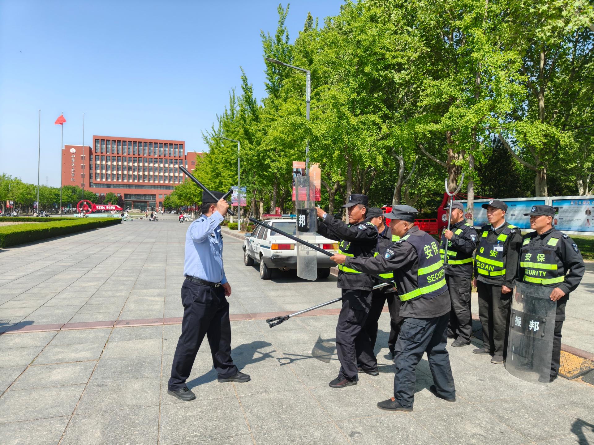 大学路派出所副所长马明震结合近期校园安全真实案例,详细讲解了暴力事件的特征及危害,他指出,学校安保工作人员作为第一道防线,必须时刻保持警觉,熟练掌握防暴技能,在关键时刻保护师生安全。在模拟演练过程中,安保工作人员面对突发事件,即刻启动应急响应,按响一键报警系统,派出所民警火速抵达现场,大家迅速组队、协同作战,手持钢叉、盾牌等从多方向围拢,将歹徒制服。整个处置过程高效有序,充分展示警校联动力量。