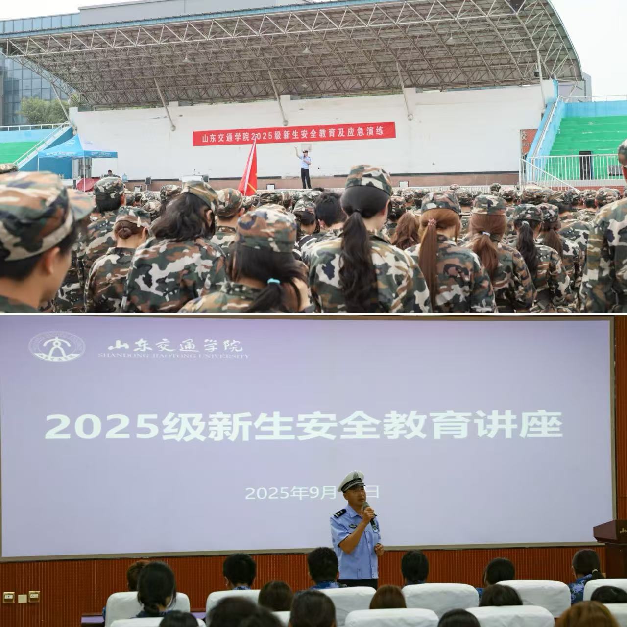 近日,学校在长清校区、威海校区分别组织开展2025级新生安全教育及应急演练活动。